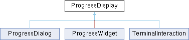 The ProgressDisplay class is an interface for classes that can display progression in any form. Most of the time it is used to display the progress of a thread.