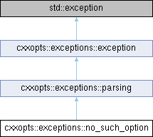 Inheritance diagram for cxxopts::exceptions::no_such_option: