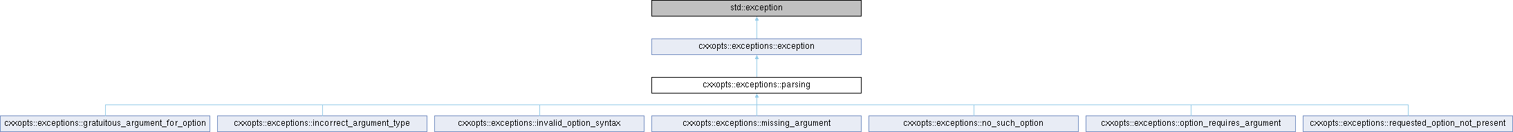 Inheritance diagram for cxxopts::exceptions::parsing: