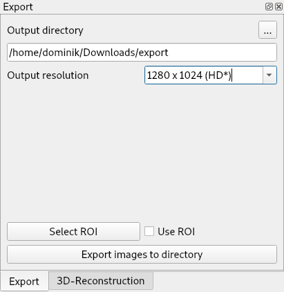 Once the algorithm is finished, we can export the selected images. In the Export-tab select a fitting location and name for this set of images. We choose export in the example. You can also change the resolution of the images. To speed things up, we reduced the image resolution to HD and hit export: